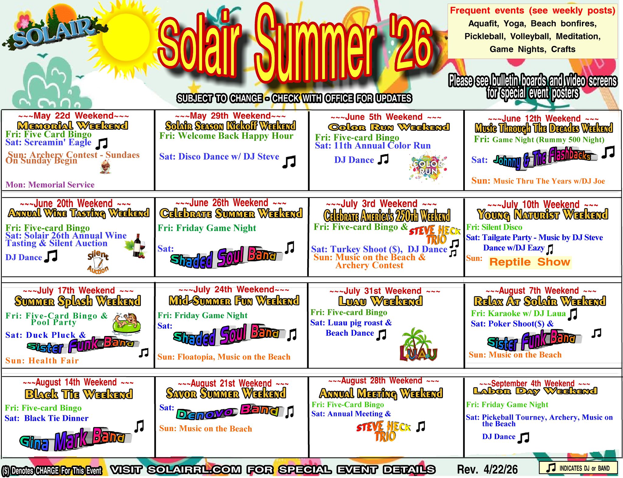 Solair Recreation Committee Unveils Exciting 2026 Summer Schedule The Solair Recreation Committee has released its highly anticipated 2026 Summer Schedule, and it promises to be…