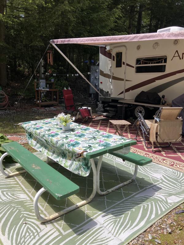 Lot on Fox Hollow. Steps from the “Fox Hole” which has 4 bathrooms. We’re including a 24 foot Aruba Starcraft travel trailer in good condition.